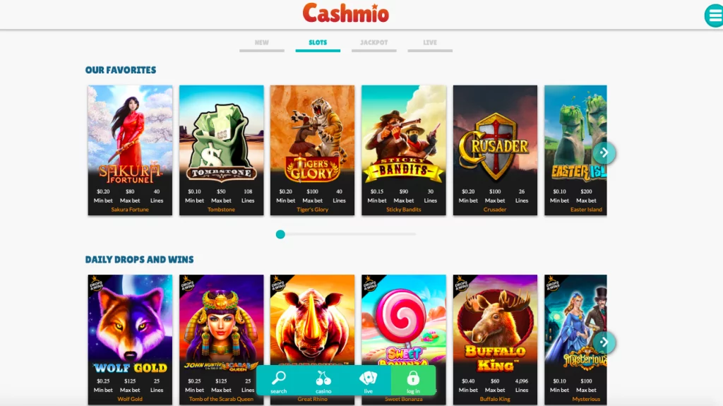 Games at Cashmio Casino